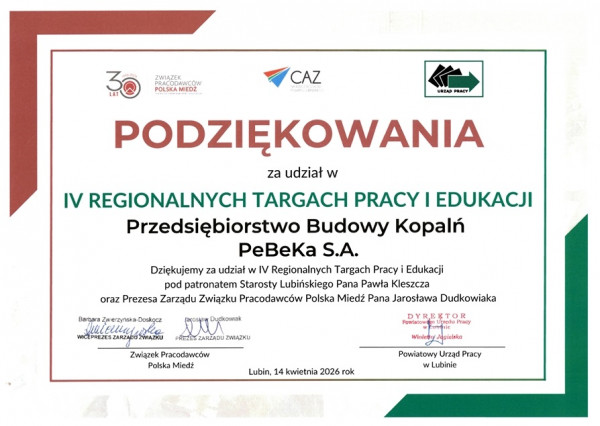 Za nami kolejne wydarzenia rekrutacyjne w regionie. W ciągu dwóch dni odwiedziliśmy Lubin (IV Regionalne Targi Pracy i Edukacji) i Legnicę (Targi Pracy z PUP), gdzie mieliśmy okazję spotkać się z osobami na różnych etapach swojej drogi zawodowej: od uczniów i studentów po osoby z doświadczeniem, które rozważają zmianę pracy. Nasze stoisko cieszyło się bardzo dużym zainteresowaniem, ale rozmowy były najważniejszą częścią tych spotkań. Uczestnicy dopytywali o możliwości zatrudnienia, kierunki rozwoju i realia pracy w branży górniczej. Wiele pytań dotyczyło także wymagań na poszczególne stanowiska, ścieżek kariery oraz codziennych obowiązków.